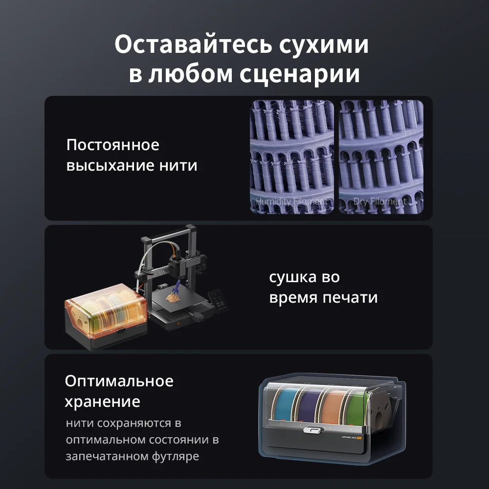 【Intelligent Design】ANYCUBIC ACE PRO features a sealed storage design integrates key features that include Nozzle Clog Detection, Automatic Filament Refill, Drying and Intelligent Identification Filament function, ensuring an efficient, convenient, successful printing experience.