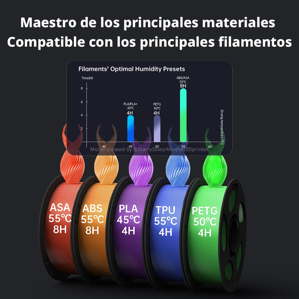 drying technology ensures even heating of the filaments, keeping them in optimal printing condition at all times to create the perfect model.