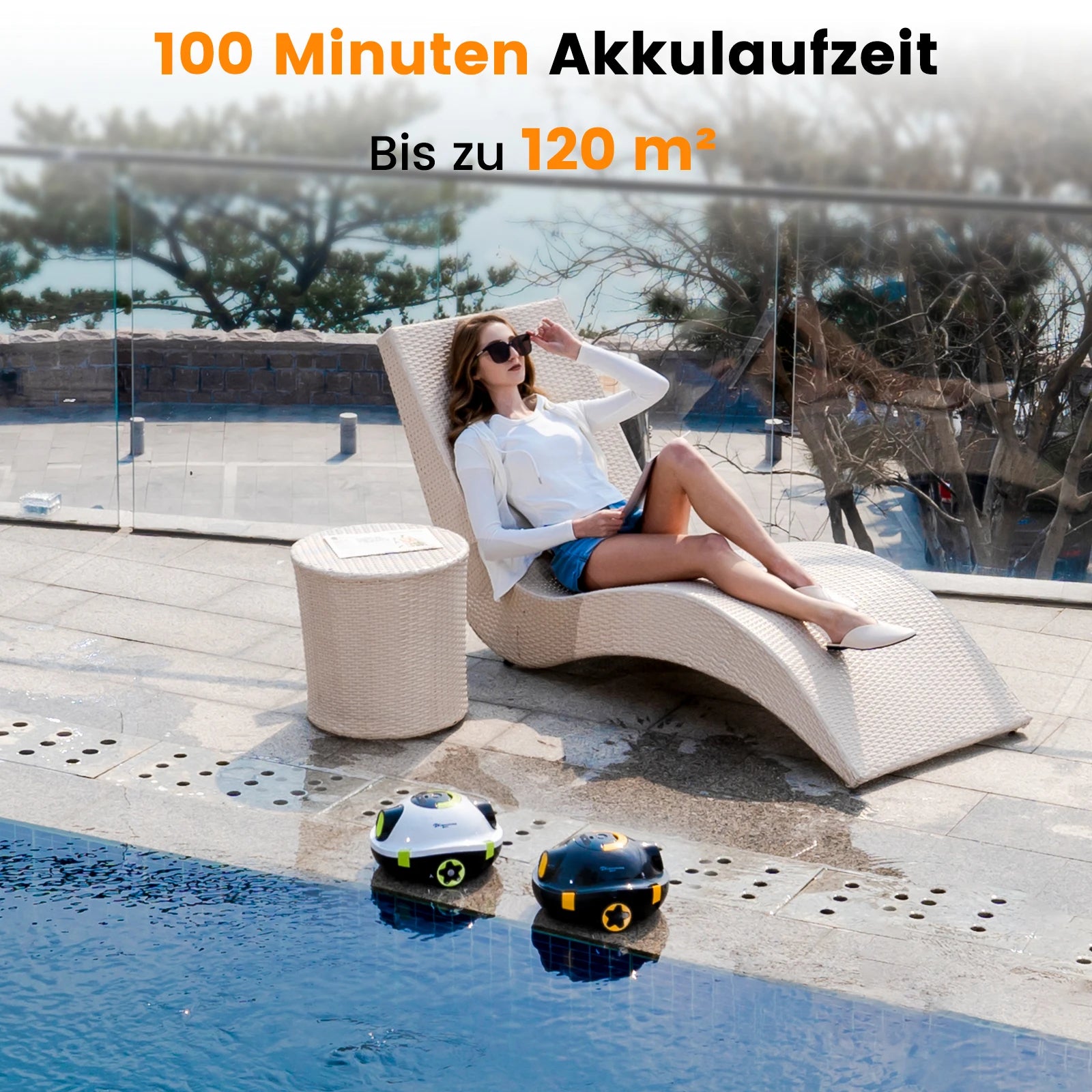 Efficient floor cleaning, Comprehensive coverage:This pool robots is specially designed for floor cleaning and can efficiently clean the pool floor. It is suitable for swimming pools up to 120 square meters. The 180-micron high-precision filter effectively captures sand, dust and fine particles, and the 3-liter capacity collection container reduces cleaning frequency and keeps the pool clean. Whether PVC, tiles or vinyl, this robots can easily cope with it.