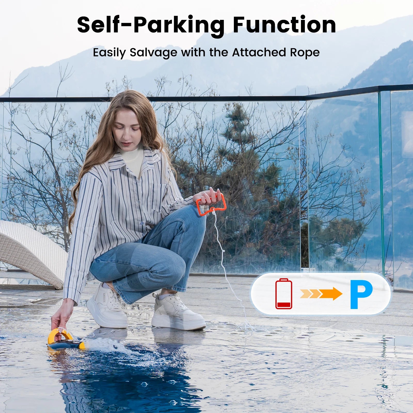 Wireless Design, Easy To Operate:The wireless design puts an end to cables and enables freer and more flexible operation. The button control is simple and intuitive, so even first-time users can easily use it. The mobile roll design is stable and efficient, suitable for above-ground and underground pools and ensures a long-lasting cleaning experience.