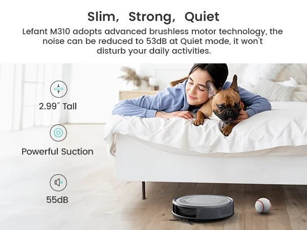 Lefant M310 adopts advanced brushless motor technology,the noise can be reduced to 53dB at Quiet mode, it won't disturb your daily activities.