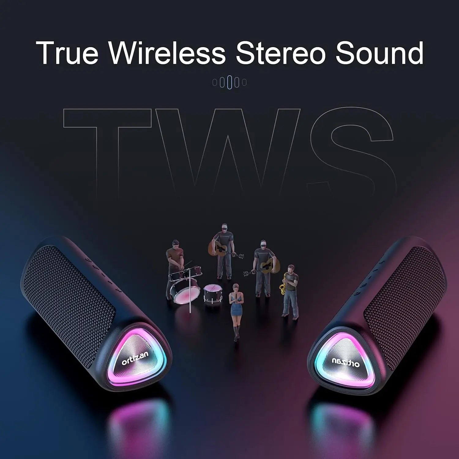 Ortizan M7 Outdoor Bluetooth Speaker, 24W Output Power Bluetooth 5.3 Speaker ,IPX7 Waterproof,Micro SD Card,AUX in, RGB Light
