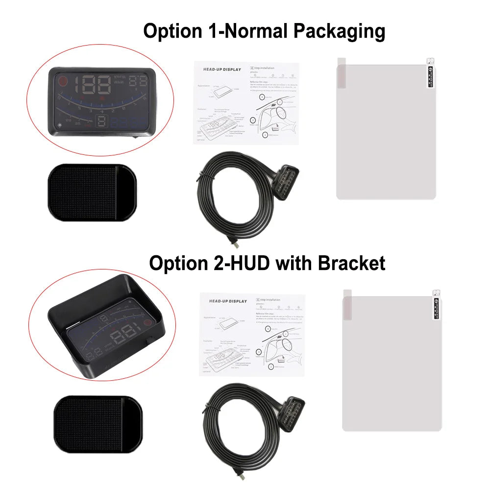 This is a classic OBDii Head-up Display(HUD) with 5.5” large screen. Displays driving data on the front windshield such as speed, RPM, water temperature, voltage, single mileage etc. HUD avoids the danger of drivers looking down at the dashboard, it ensures the safety of drivers because of watching the data on the car front window glass, and helps drivers to keep the best state on the way, keep you in a safe driving mode. Besides, a variety of operating interfaces and colors can be switched freely, It will bring more fun to your car life.