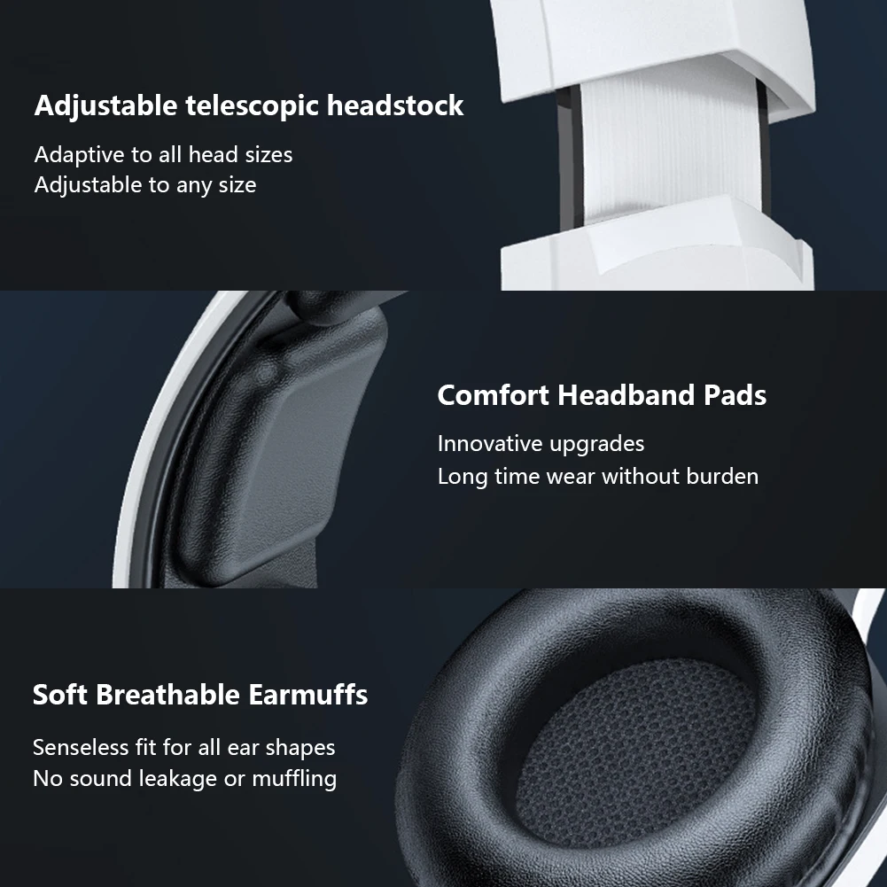 1. Extended Battery Life: With up to 60 hours of battery life with lights off and 20 hours with lights on, these gamer headphones ensure uninterrupted gaming or music sessions without frequent recharging, providing a seamless experience. Specification: Origin: Mainland China Material: ABS Connection: BT V5.3, wired, 2.4GHz Speaker diameter: 50MM diaphragm unit Light off: battery life is about 60h Light on: battery life is about 20h Frequency response range: 20Hz-20KHz Charging time: about 2h Lithium battery: 1000mAh Communication distance: about 15m Charging interface: TYPE-C USB Size: 200.00x192.00x97.00mm/7.87x7.56x3.82inch