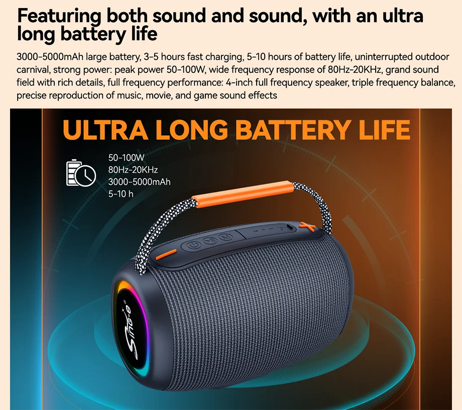 3000-5000mAh large capacity battery, fast charging in 3-5 hours, ultra long battery life in 5-10 hours, USB charging design, wherever you go, wherever you're excited
